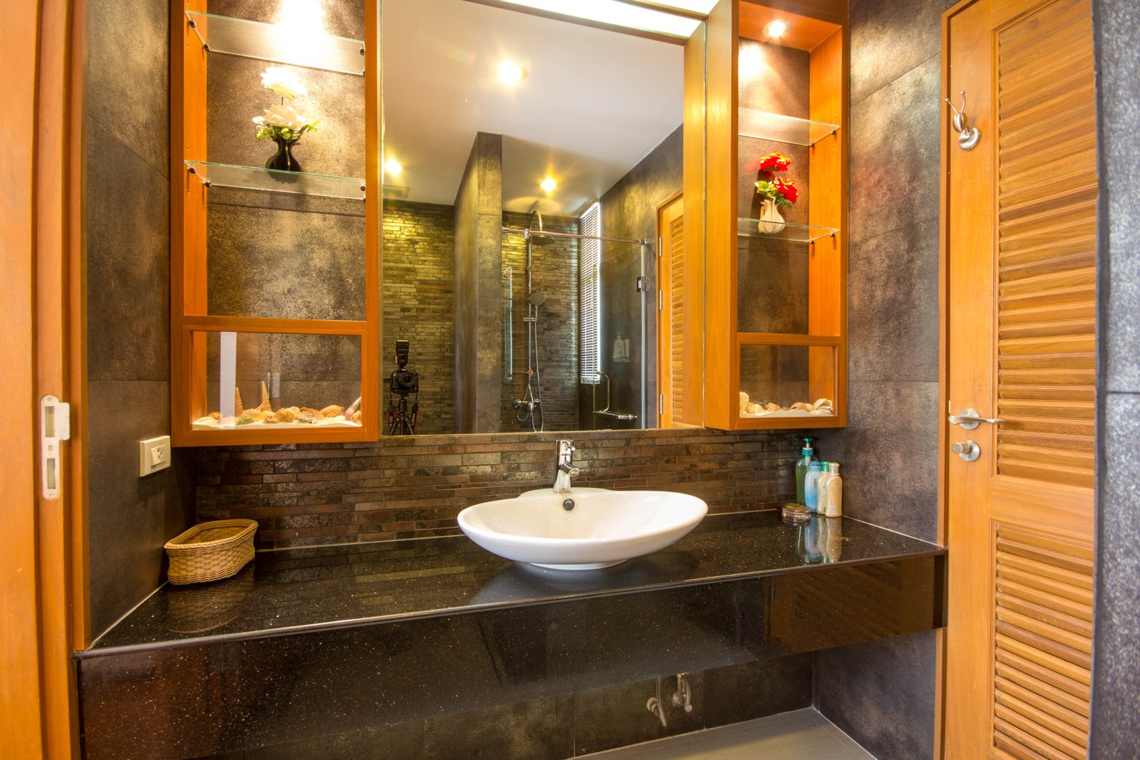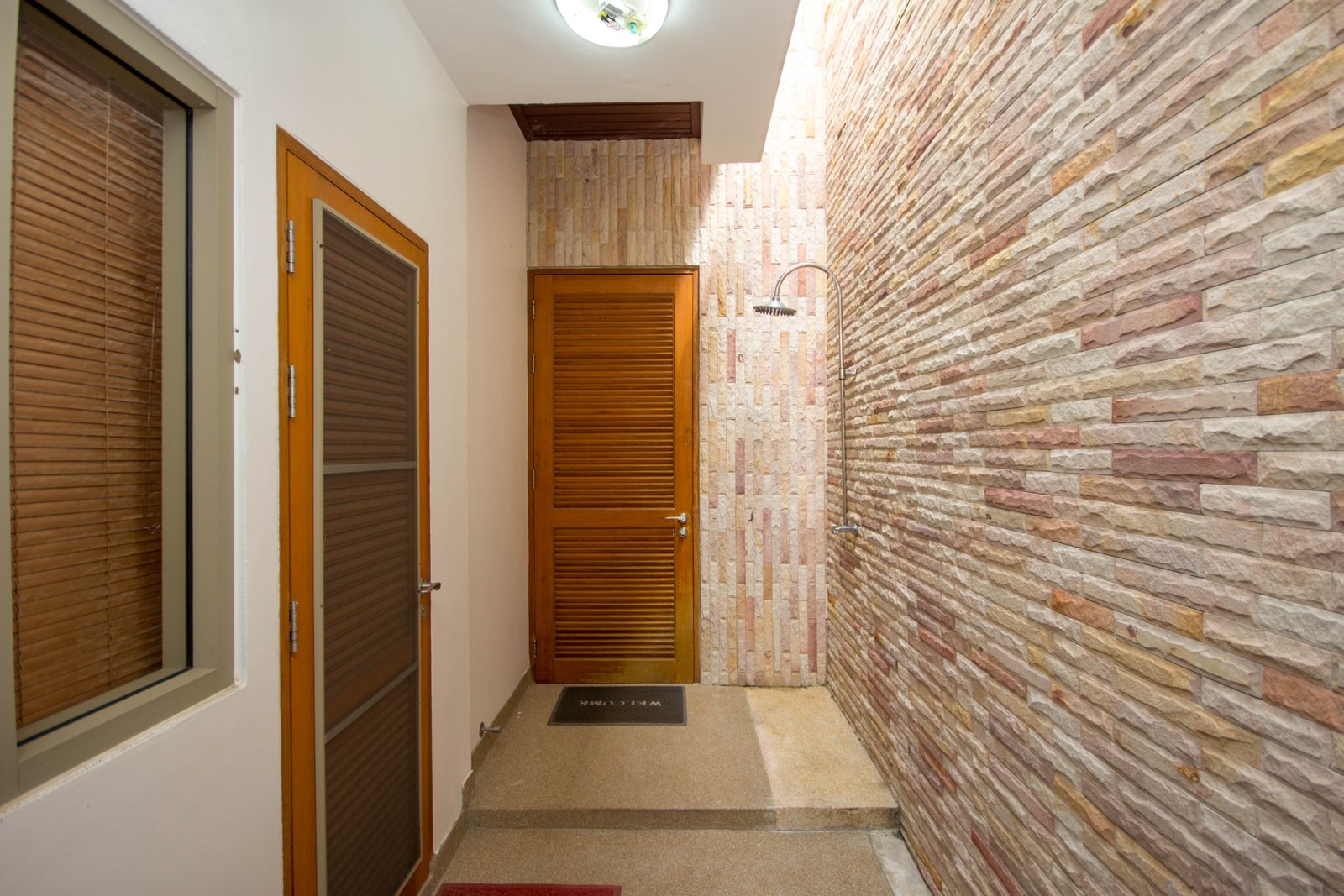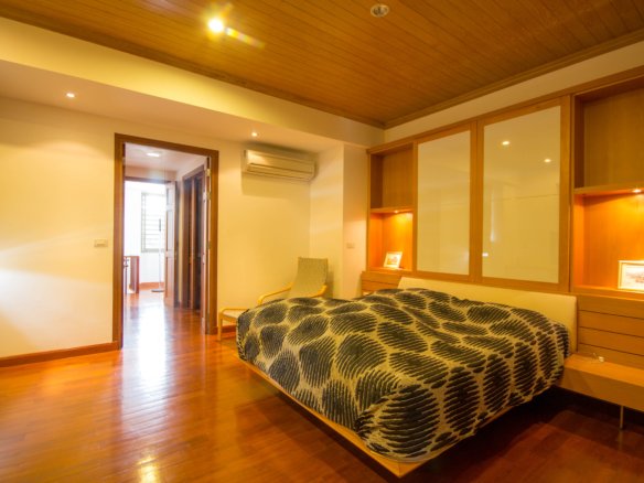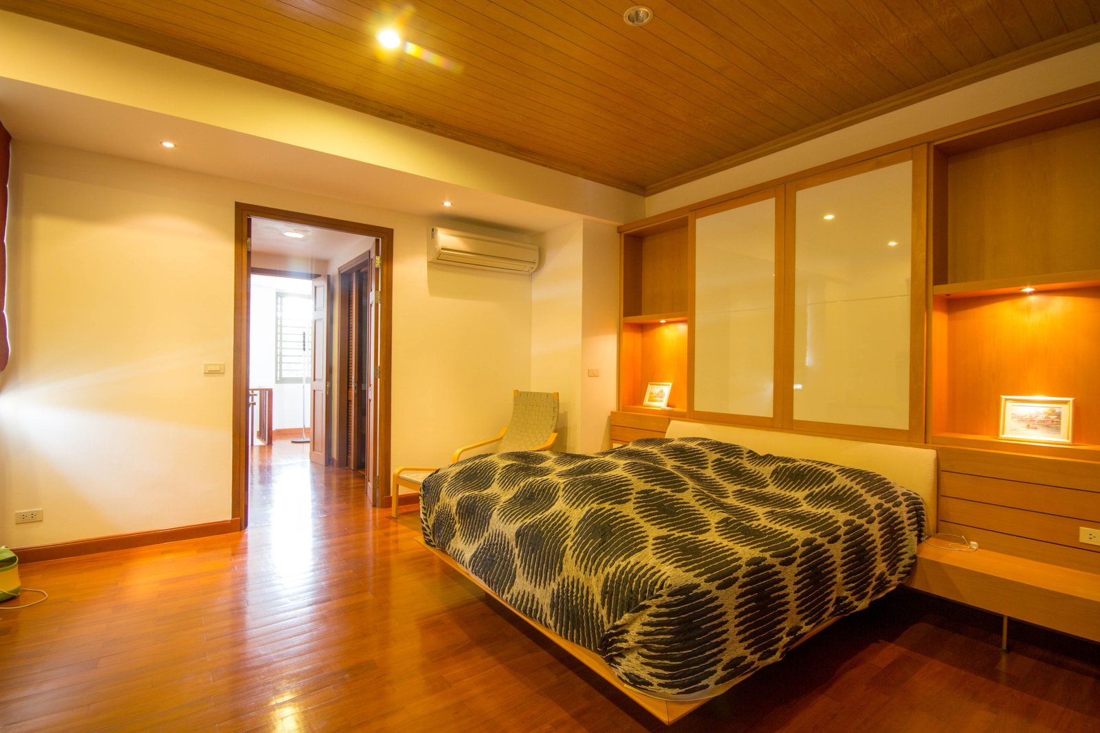 - Spacious bedrooms with built-in wooden shelving and storage
