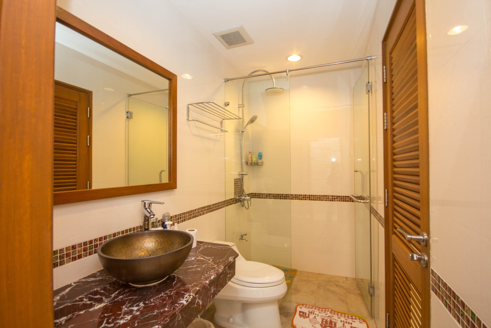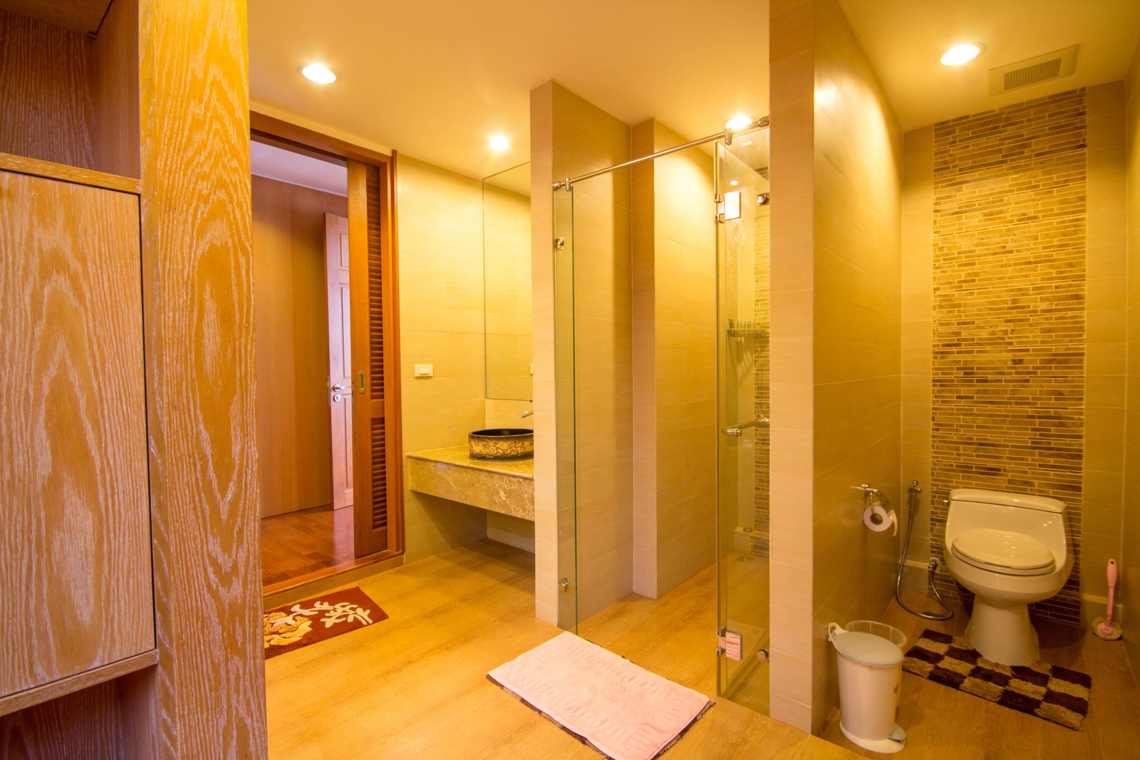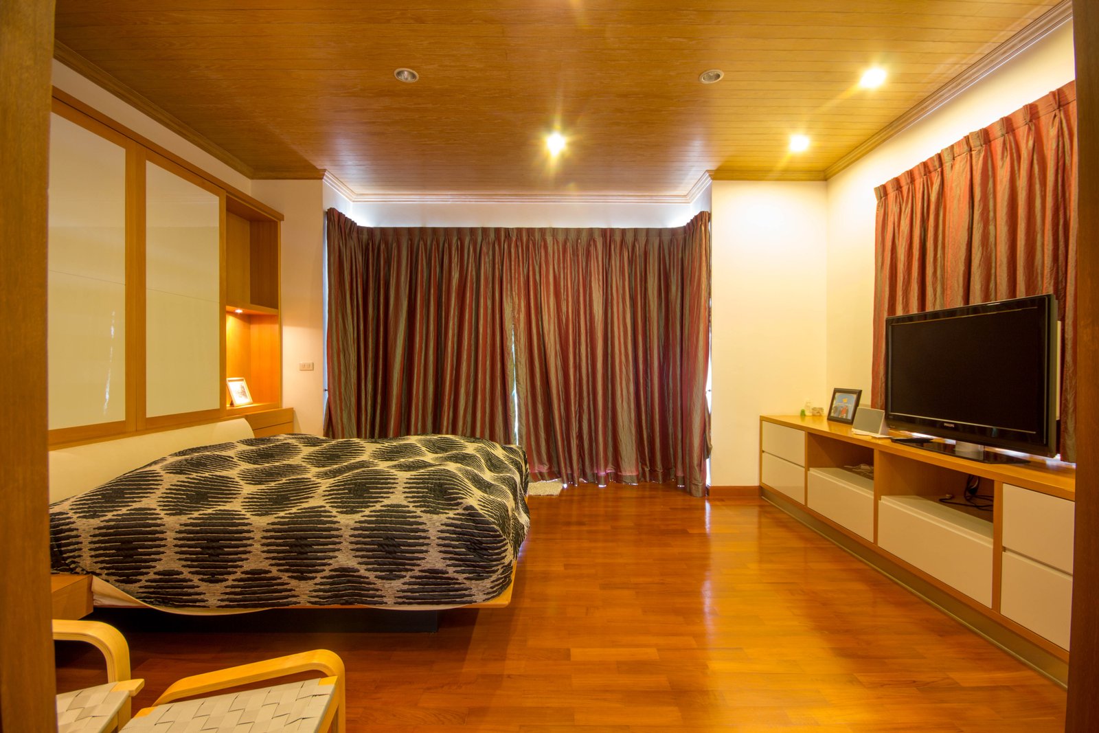 - Flat-screen TV and well-placed recessed lighting